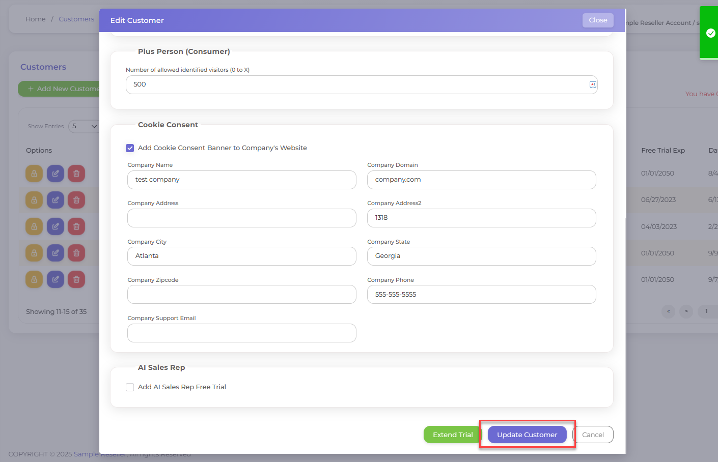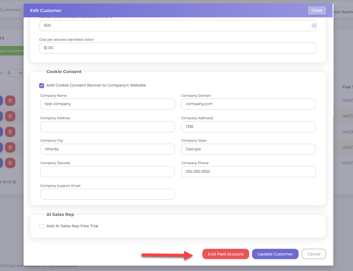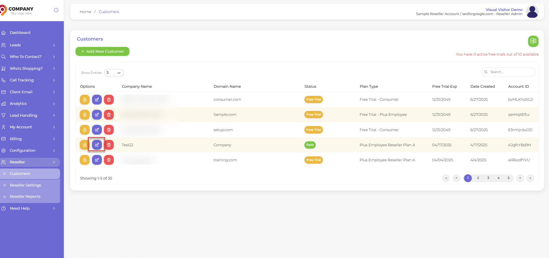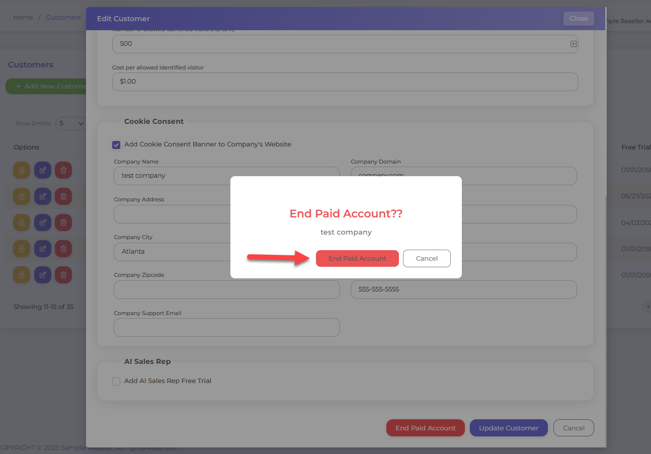 When you're ready to switch a free trial to a paid account - follow the steps below. 1. Go to Reseller > Customers 2. Click the blue edit button next to the account you want to update. 3. Click on End Free Trial. Make Paid Account. 4. Click Update ...