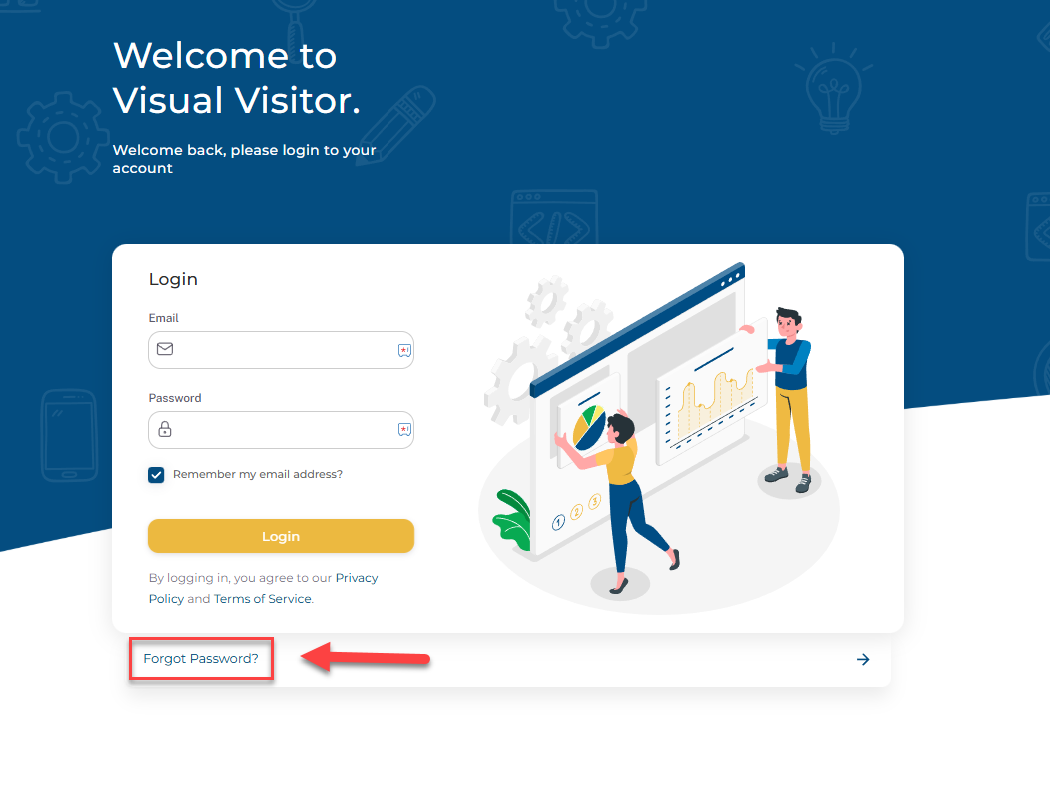 From the login page app.visualvisitor.com click on the "Forgot Password" button.