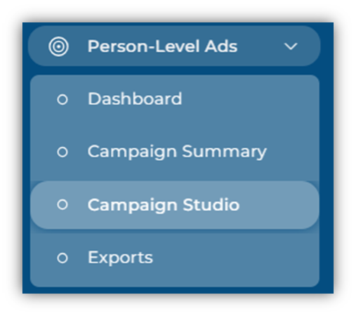 From the main menu, go to Person-Level Ads → Campaign Studio.