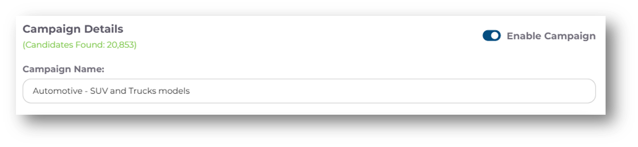 After saving your initial setup, define the campaign details and export preferences. You will need to assign a Campaign Name