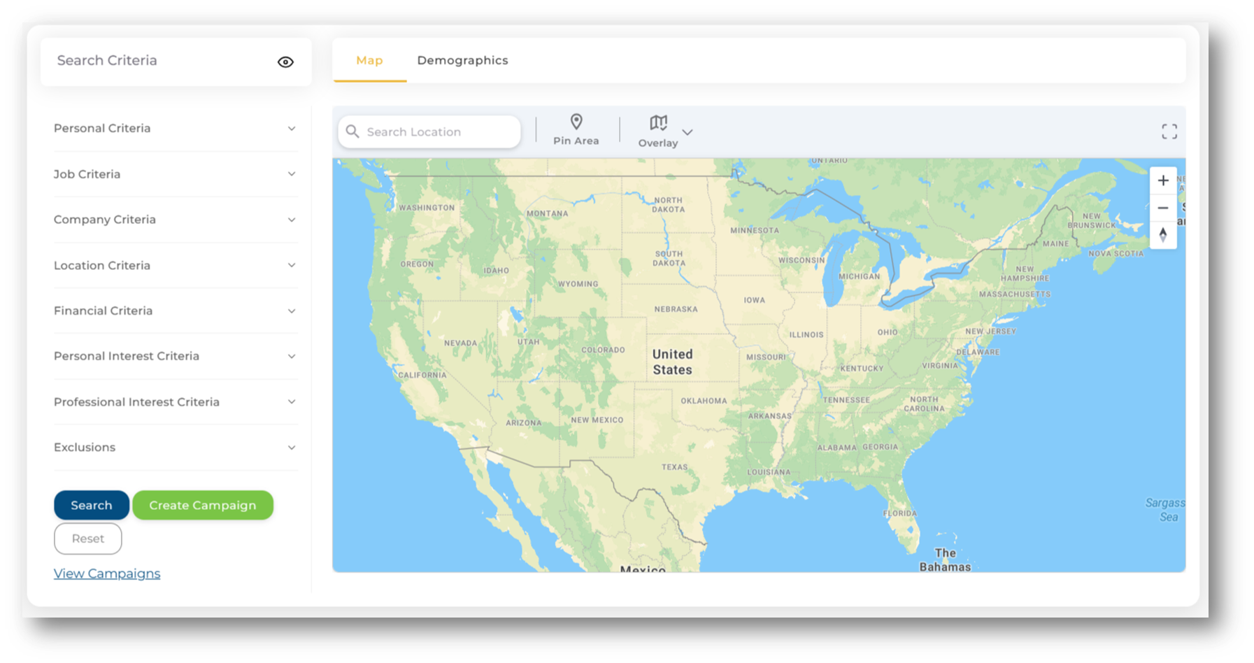The Campaign Studio allows you to build highly targeted Person-Level Advertising campaigns based on real, verified data. By defining interests, locations, and behavioral criteria, you can reach individuals actively researching products or services related to your business.