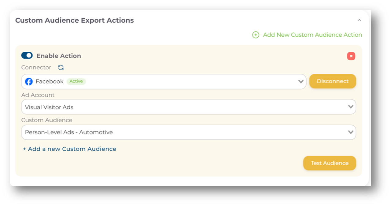 Determine the Custom Audience list from the dropdown, or add a new Custom Audience to send to.