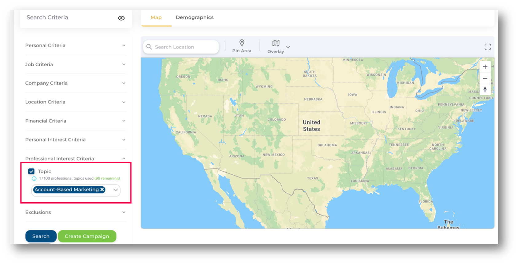 Professional Interest Criteria: Focuses on business and occupational topics (ideal for B2B campaigns).